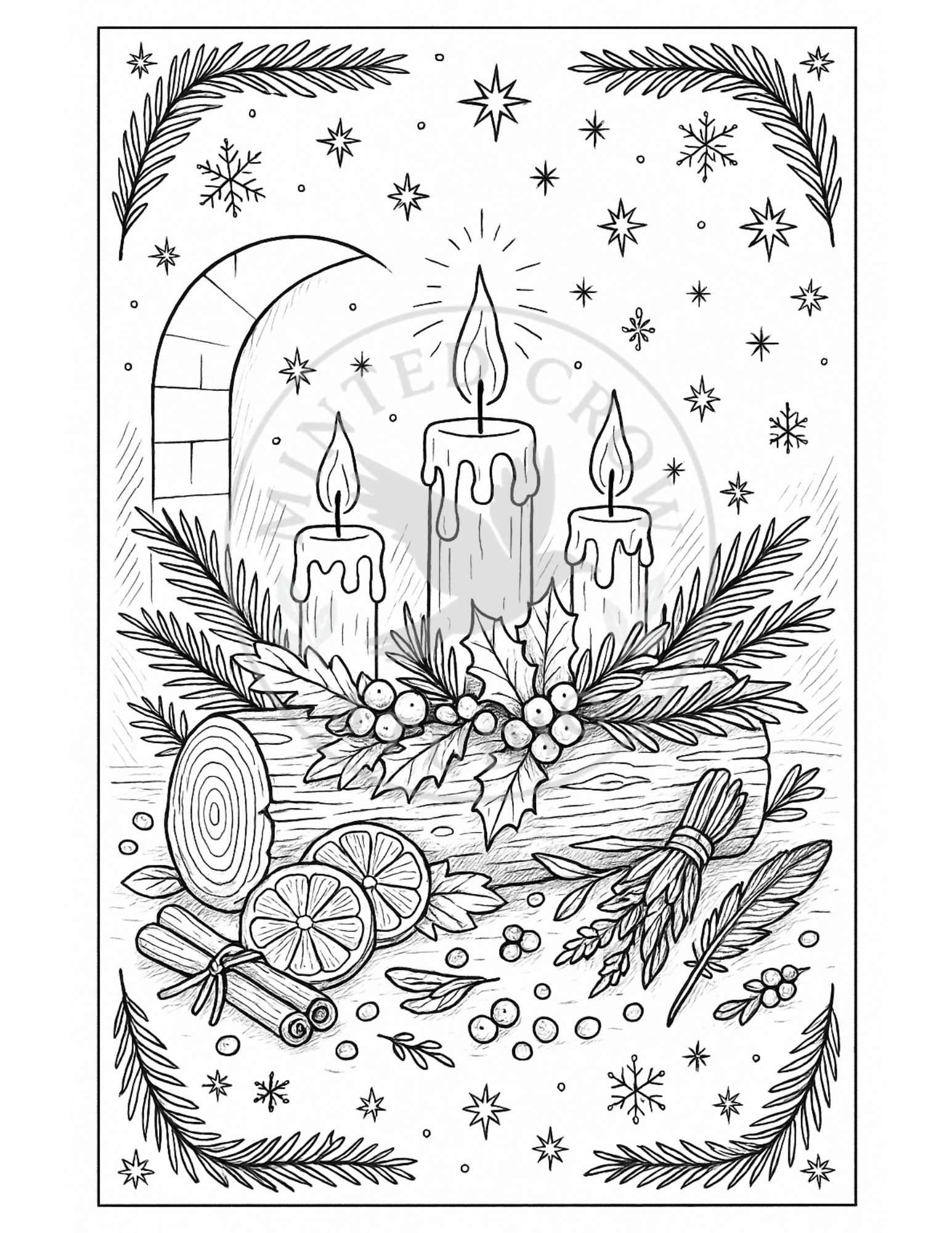 Candles flicker atop a yule log, nestled in pine and spice. A sacred spark held through the dark.