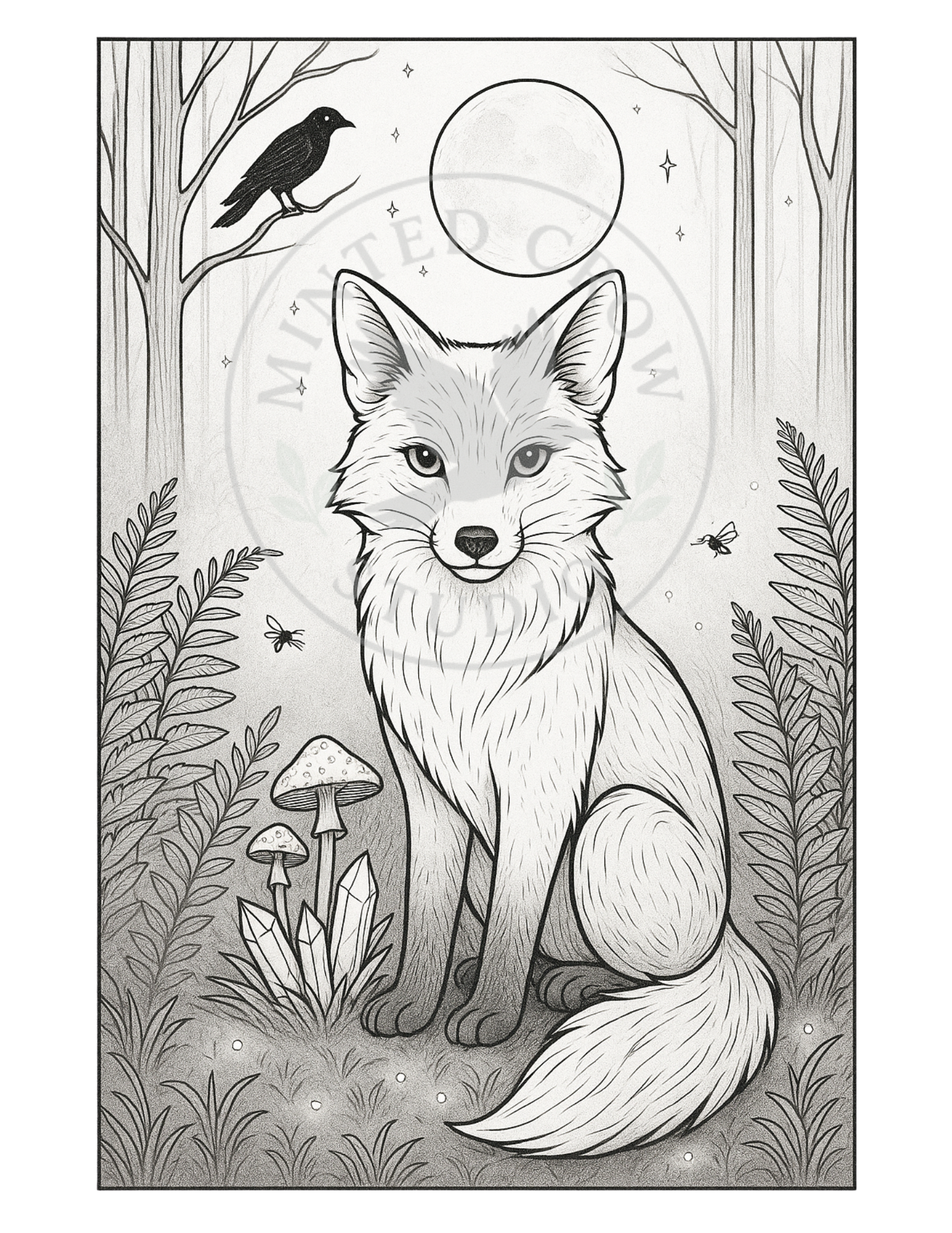A fox watches from the shadows, still as the trees and older than the path behind you. Mushrooms bloom, stars shimmer, and the world forgets to speak.