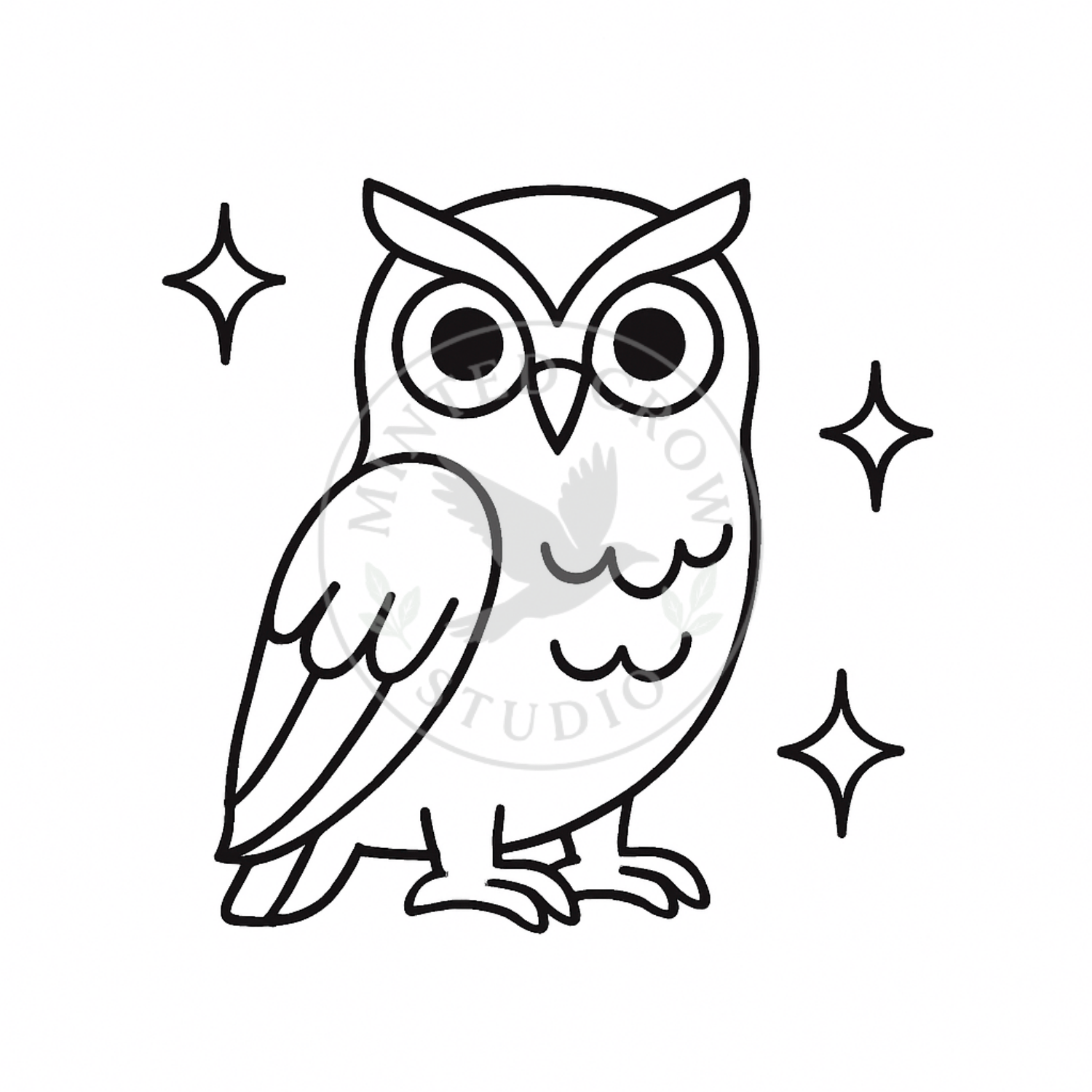 A wide-eyed owl perches beneath starlight, silent and sure.